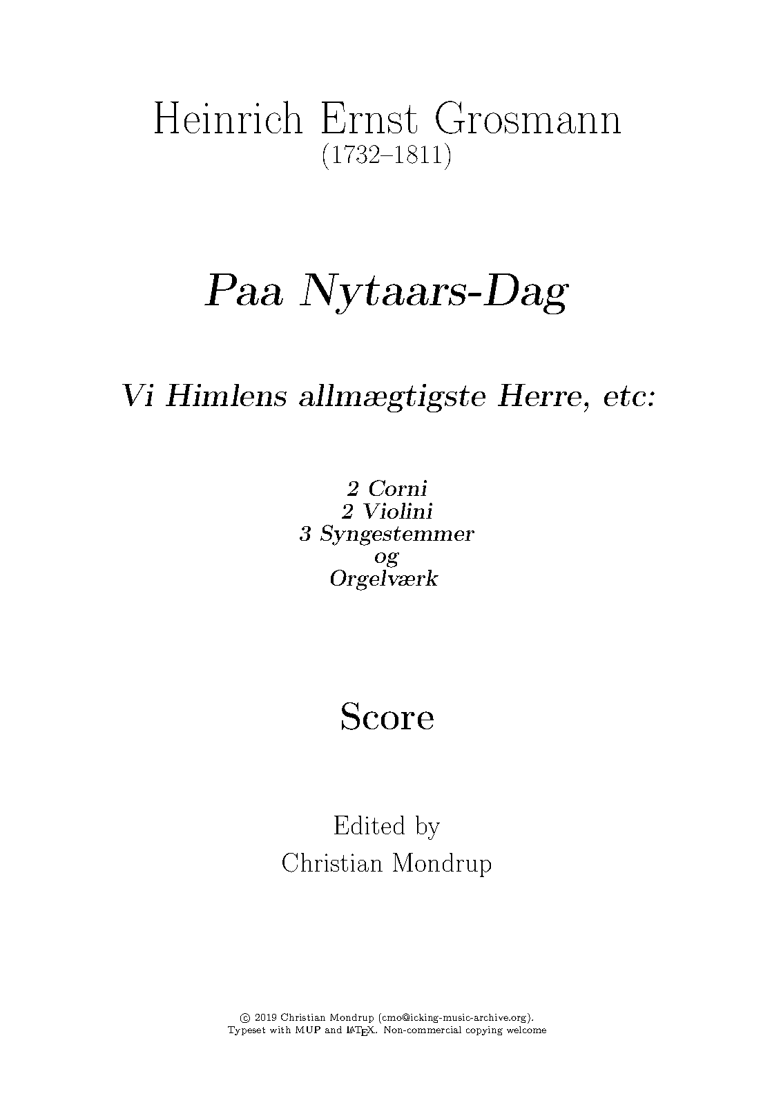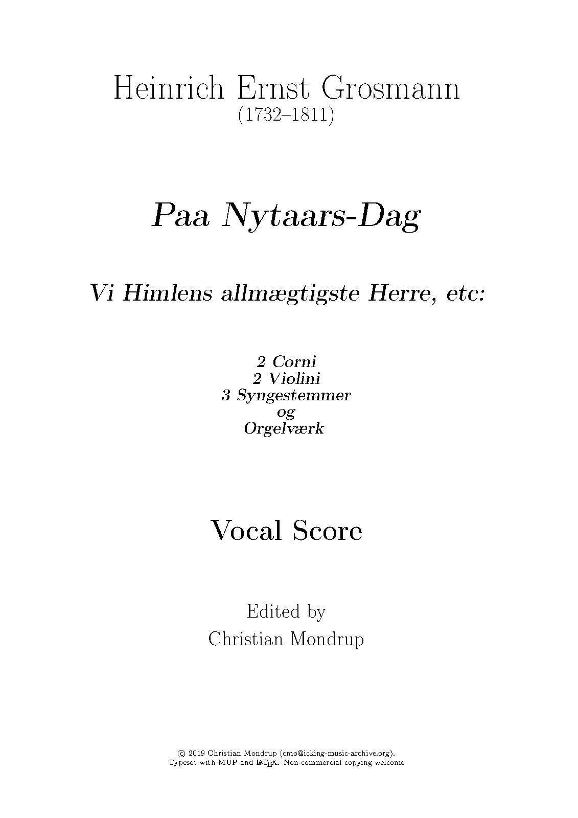 | Work Title | Cantata paa Nytaars-Dag Vi Himlens allmægtigste Herre |
