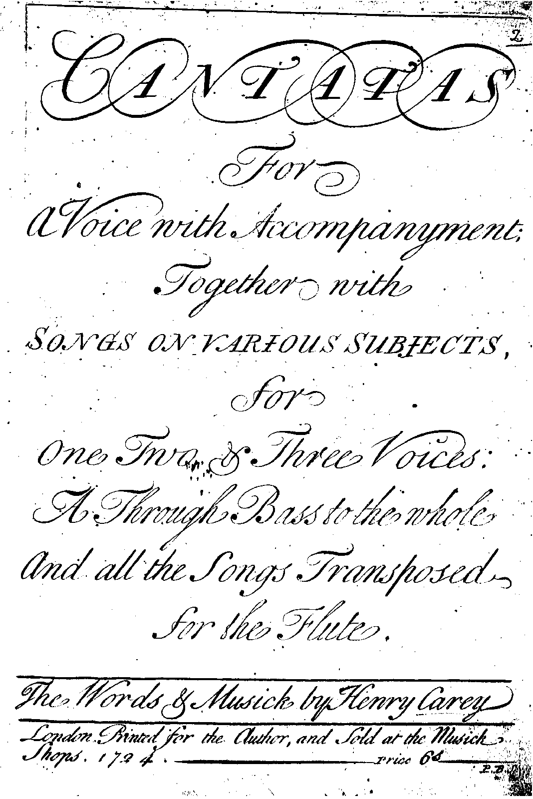 - Cantata. The fair Pastora, sate in a shady grove - voice, treble instrument, continuo