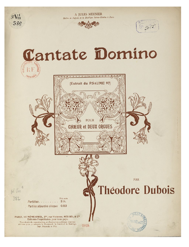 | Dedication | à Jules Meunier, Maître de Chapelle de la Basilique Ste. Clotilde à Paris |