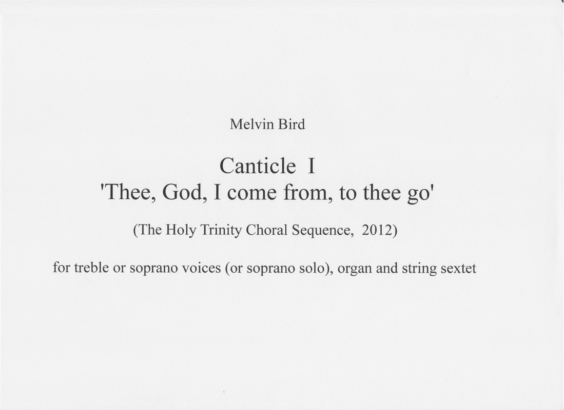Melvin Bird has asserted his right under the Copyright, Designs and Patents Act, 1988, to be identified as the composer of this work. Please contact the composer for further information. The composer welcomes any performances and recordings. melvin.bird@hotmail.com. A clear and clean text.
