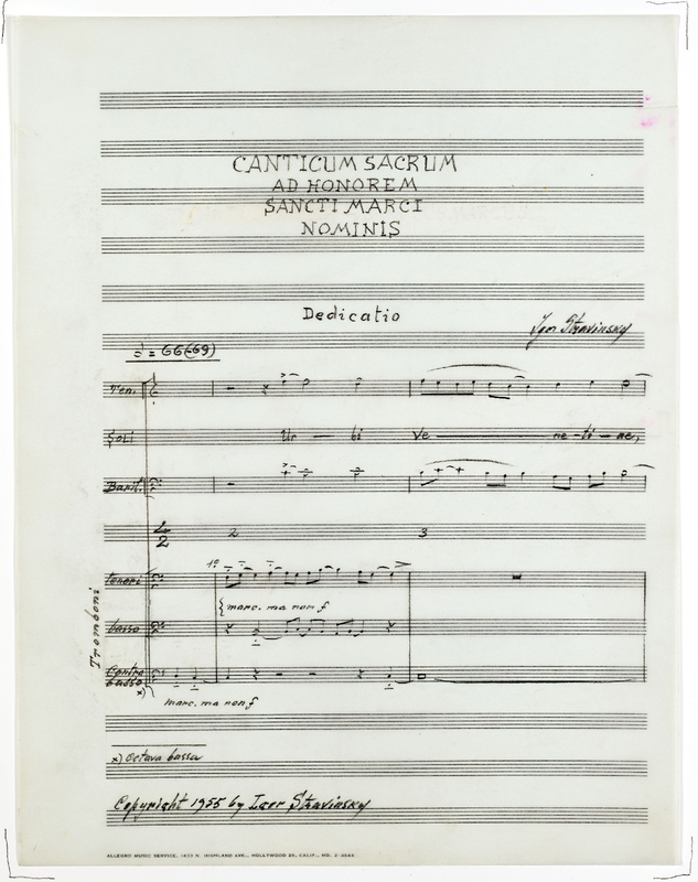 Canticum Sacrum ad honorem Sancti Marci nominis; Sacred Canticle in Honor of the Name of St. Mark