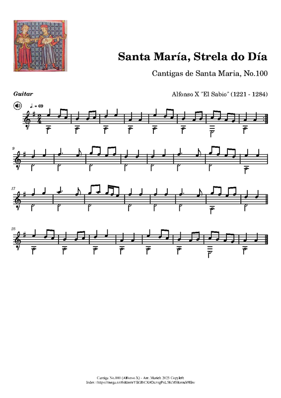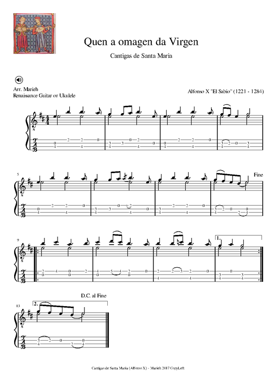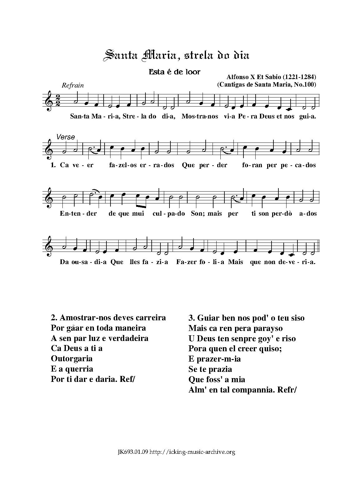 | Extra Information | Although these are traditionally ascribed to Alfonso X of Castile, according to Grove Music "there is disagreement about whether the king limited his part to supervision or whether he wrote some of the words and music himself". |