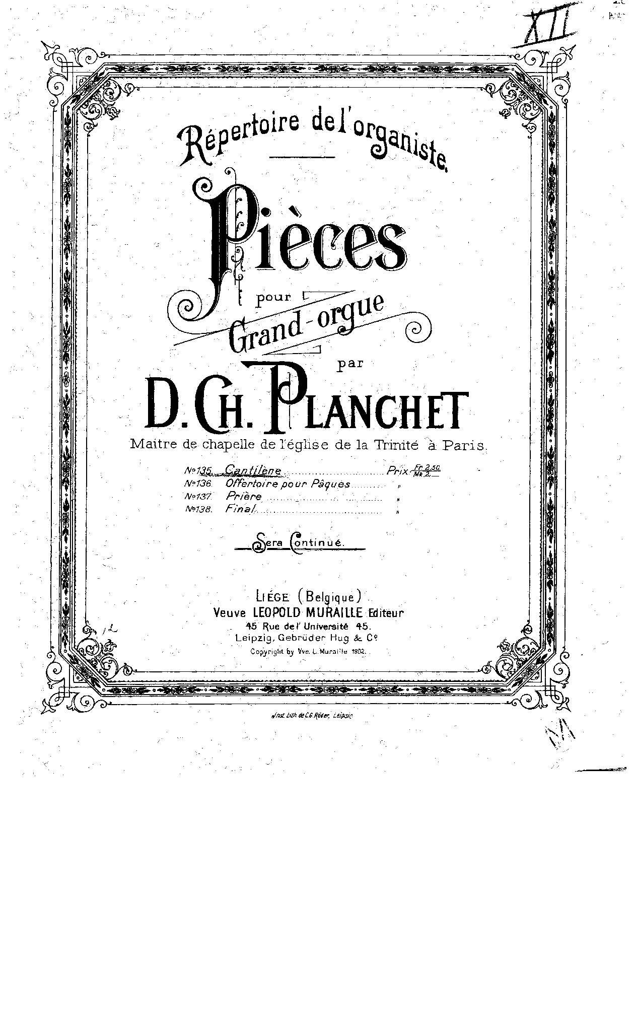 | Genre Categories | Cantilenas; For organ; Scores featuring the organ; For 1 player |