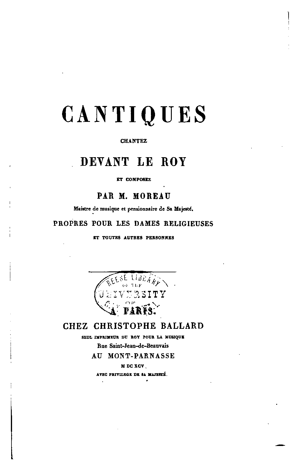 | Genre Categories | Canticles; Religious works; For 3 voices, mixed chorus, continuo; |