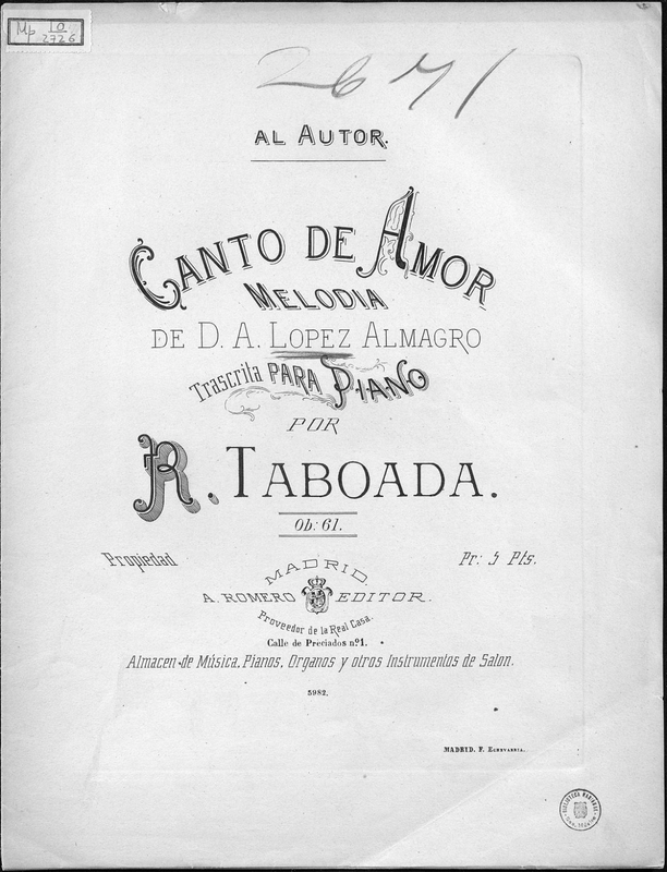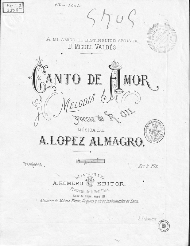| Dedication | A.R. 5956: "A mi amigo el distinguido artista D. Miguel Valdés" |