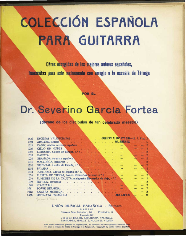 Reprinted Madrid: Unión Musical Española, n.d.(ca.1922). Plate 15189.