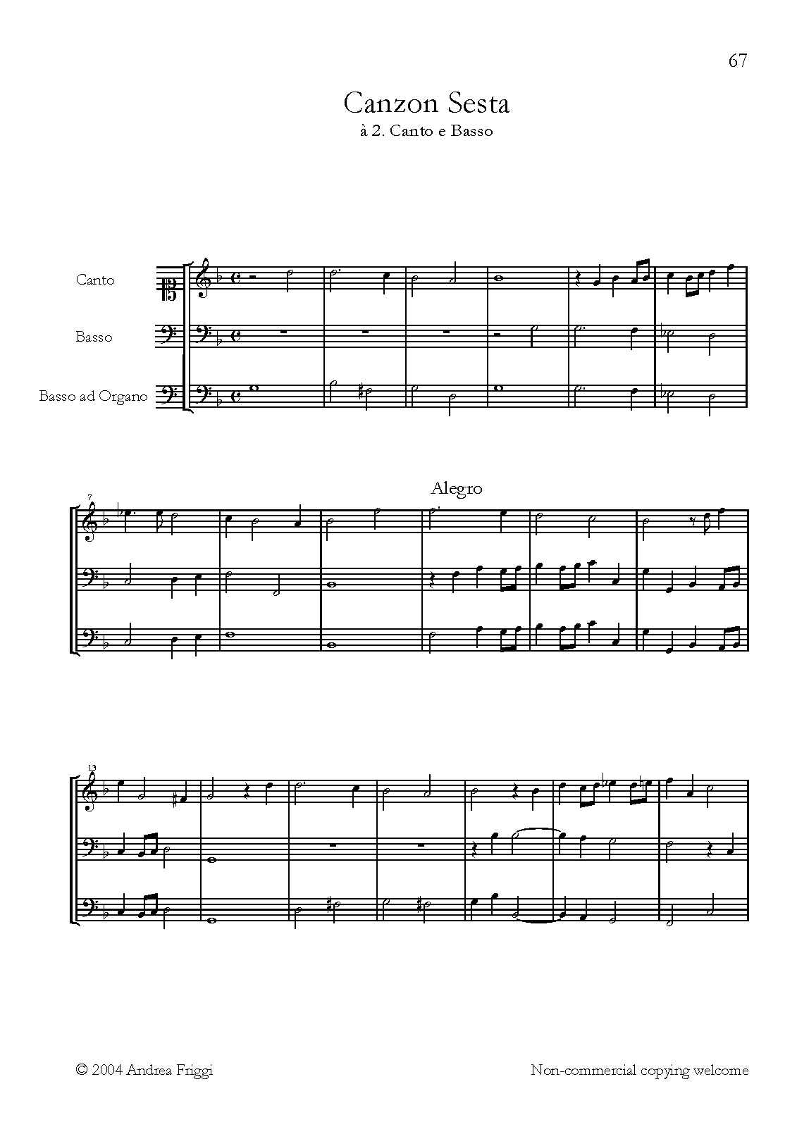 | Alternative. Title | Canzon sesta à due, canto e basso |