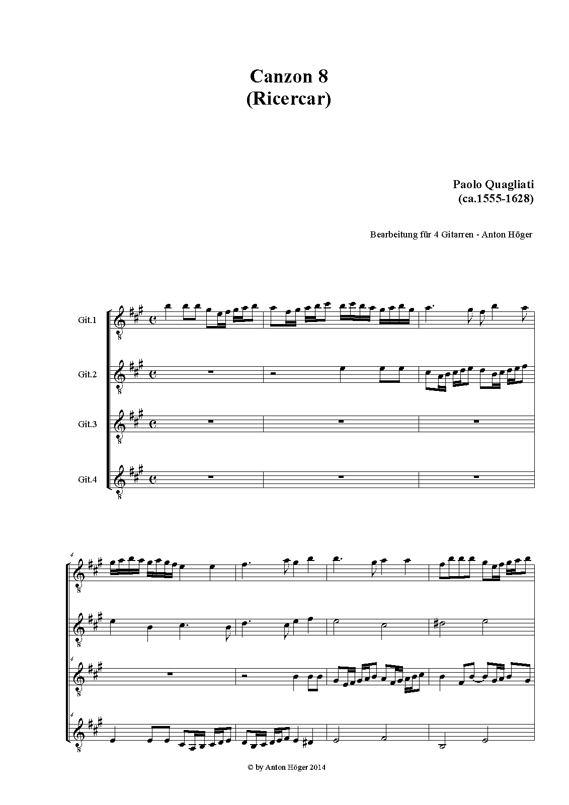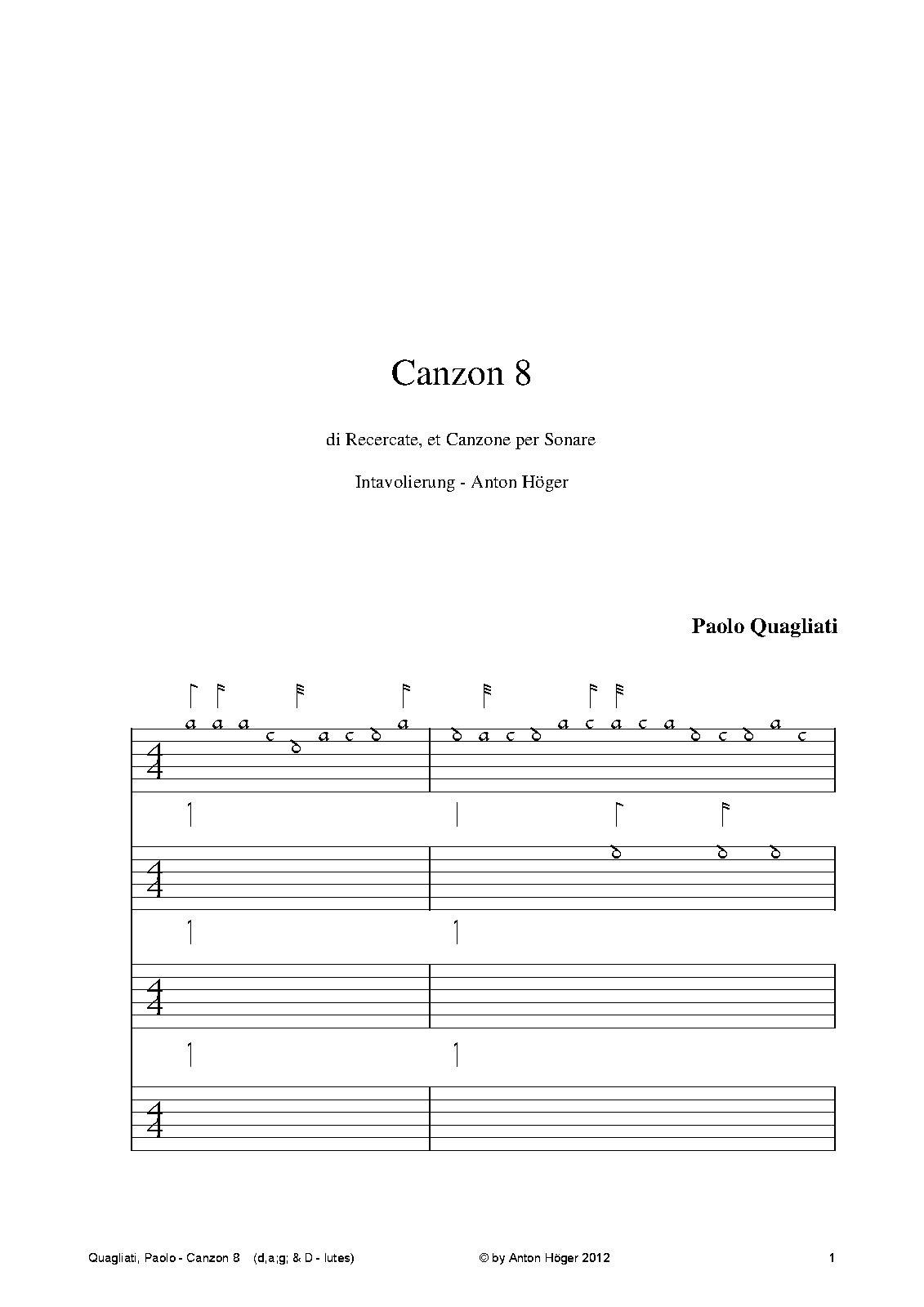 | First Publication | 1601 in Ricarcate, et Canzone per sonare, et cantare |