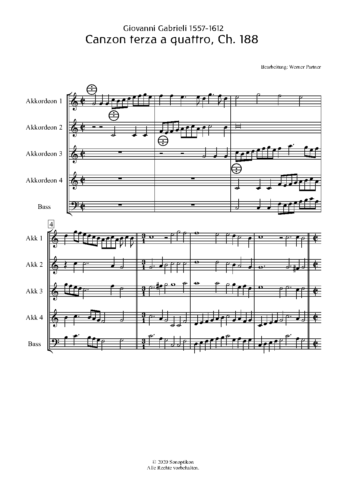 | Genre Categories | Canzonas; For treble, alto, tenor, bass instruments, continuo; Scores with basso continuo; |