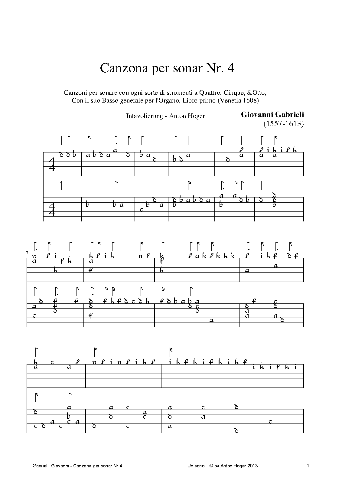 | First Publication | 1608 in Canzoni per sonare con ogni sorte di stromenti (No.4) |