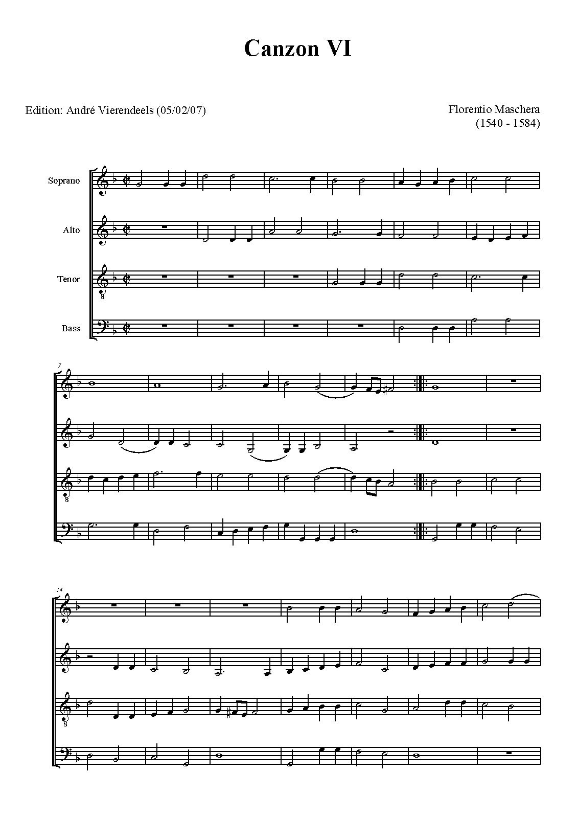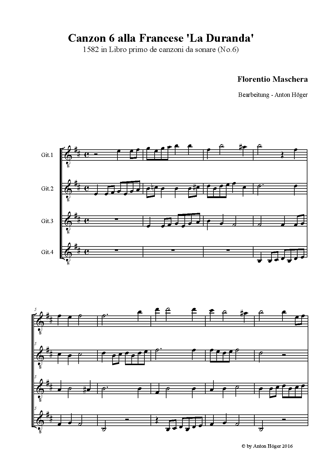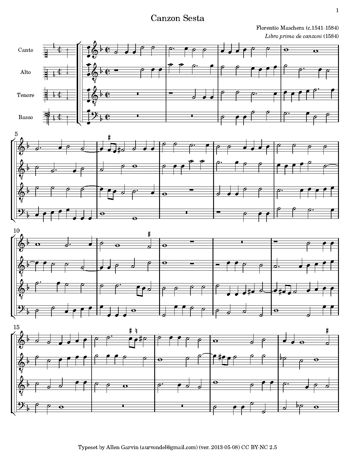 | First Publication | 1582 in Libro primo de canzoni da sonare (No.6) |