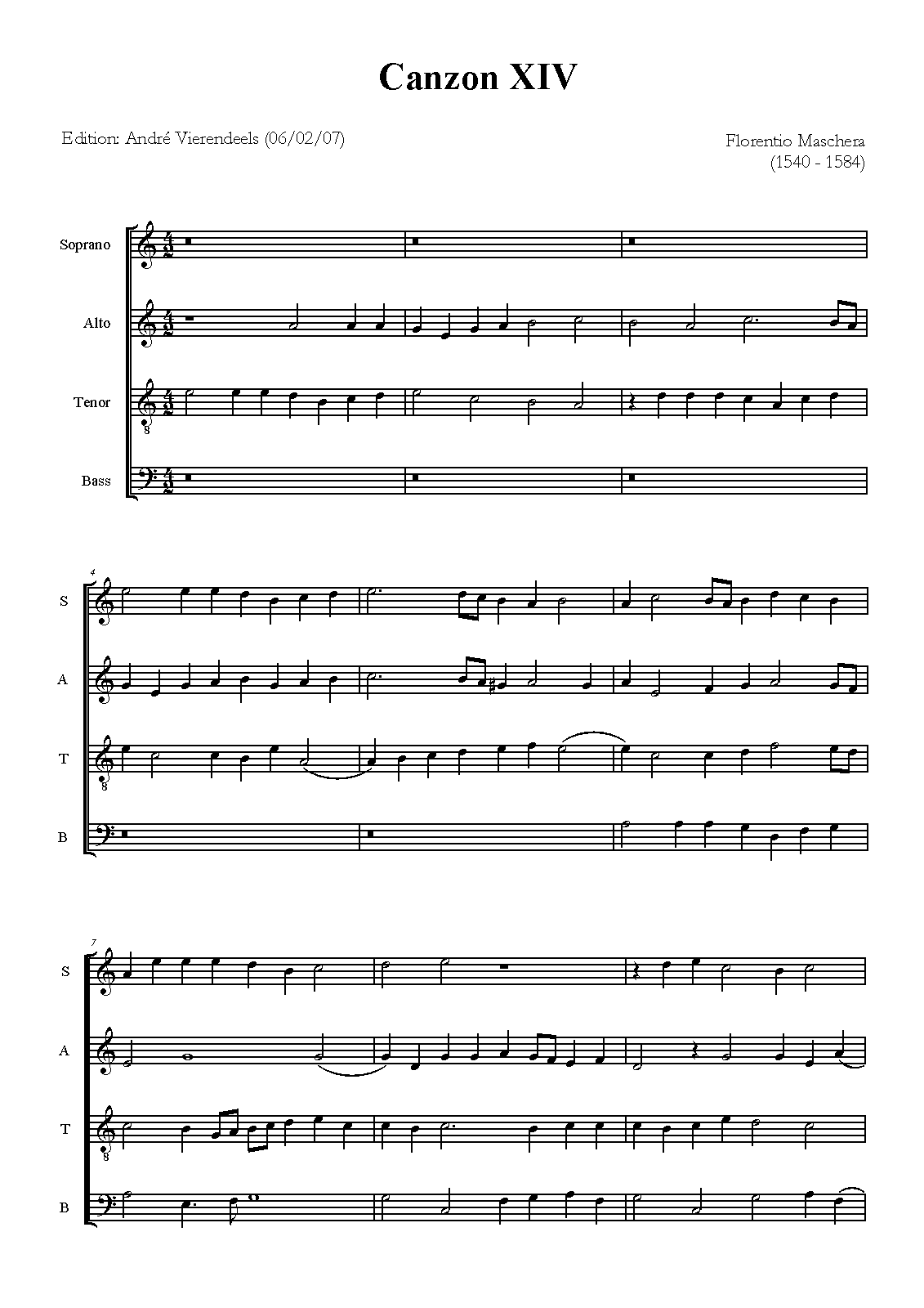 | First Publication | 1582 in Libro primo de canzoni da sonare (No.14) |