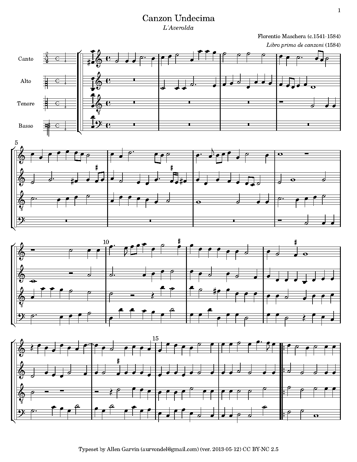 | First Publication | 1582 in Libro primo de canzoni da sonare (No.11) |