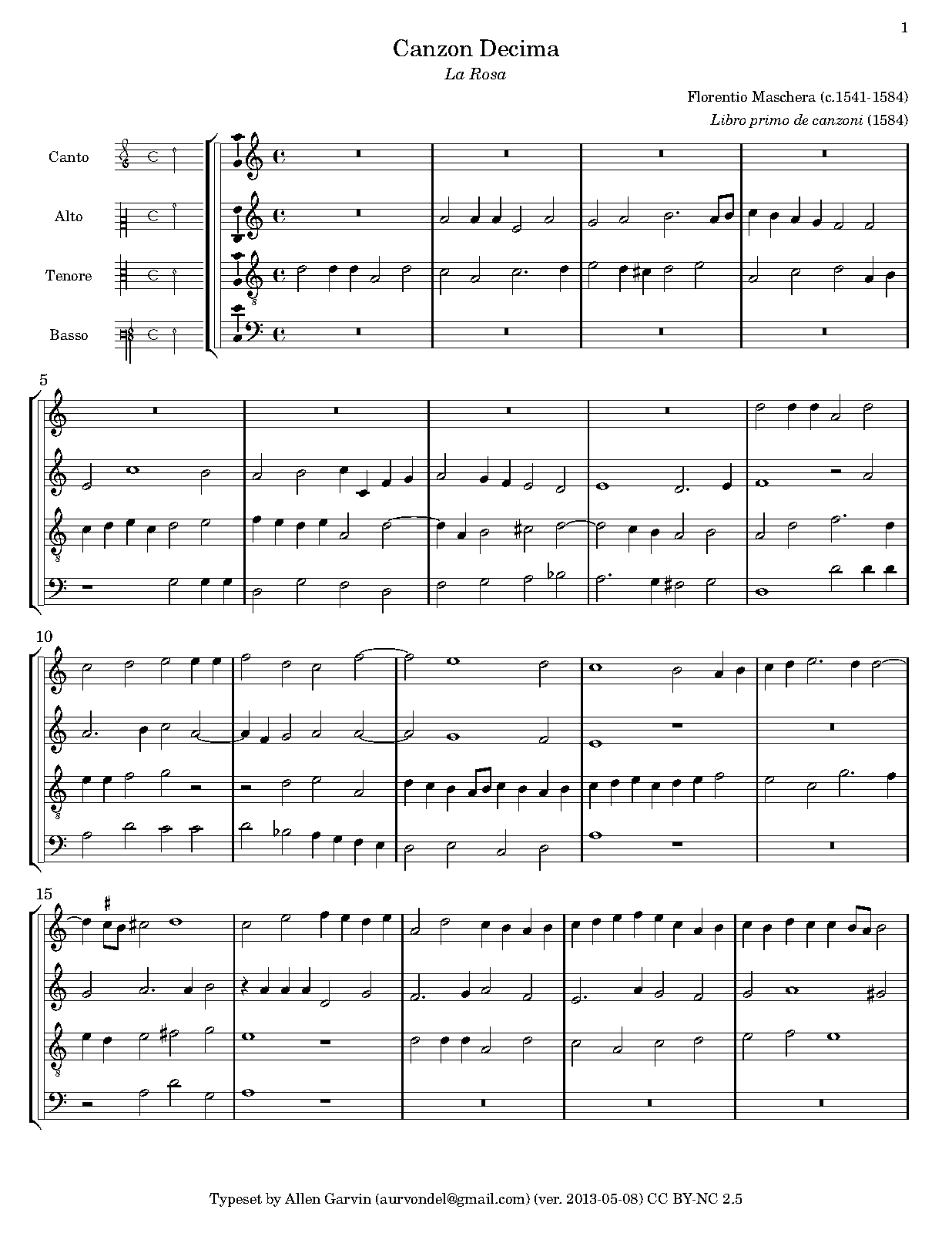 | First Publication | 1582 in Libro primo de canzoni da sonare (No.10) |