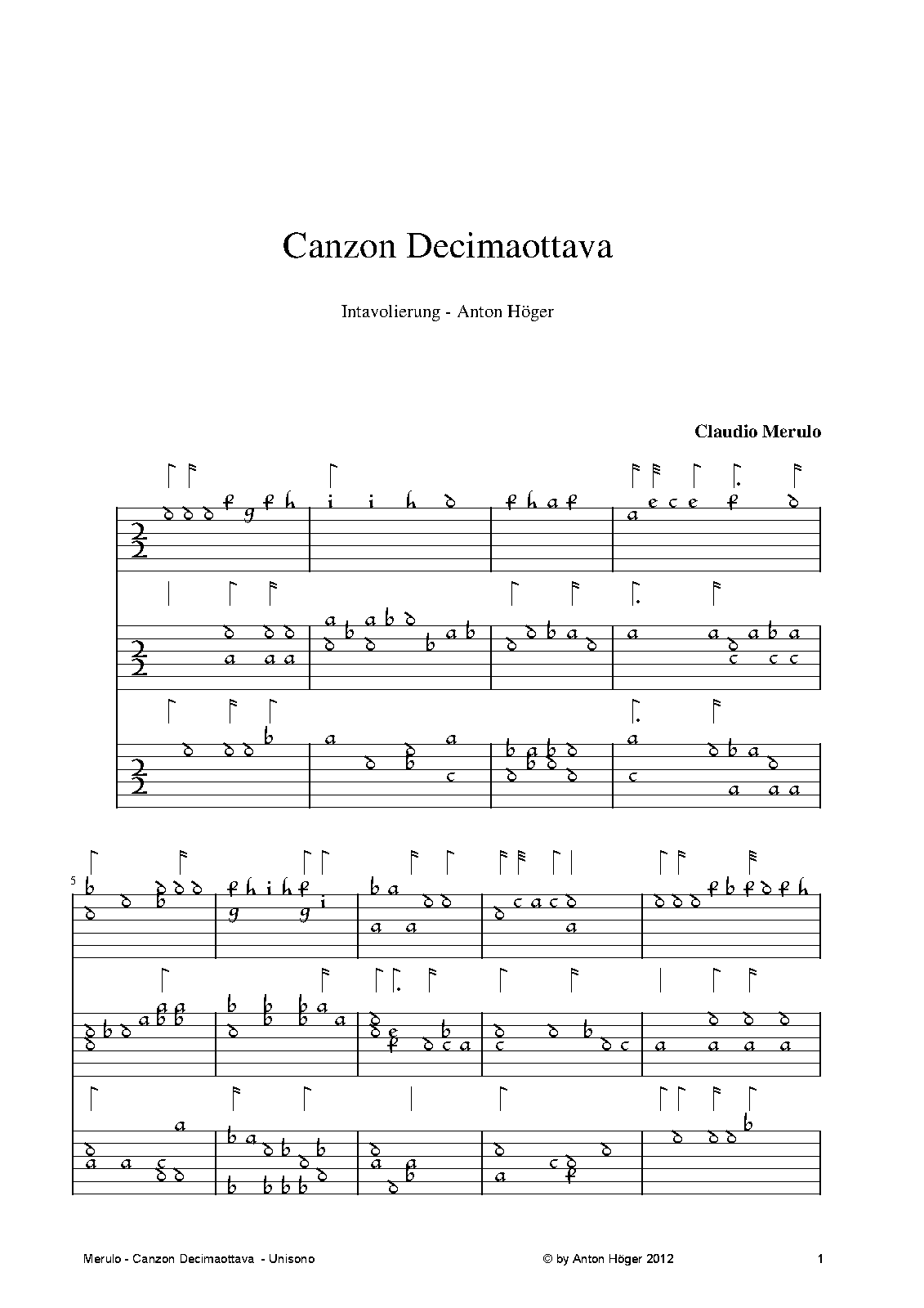 In Italian lute-tablature (Unisono) with diminutions in the tradition of the great luteplayers of the 16th century. If performed I would look forward about a small reference to my efforts.