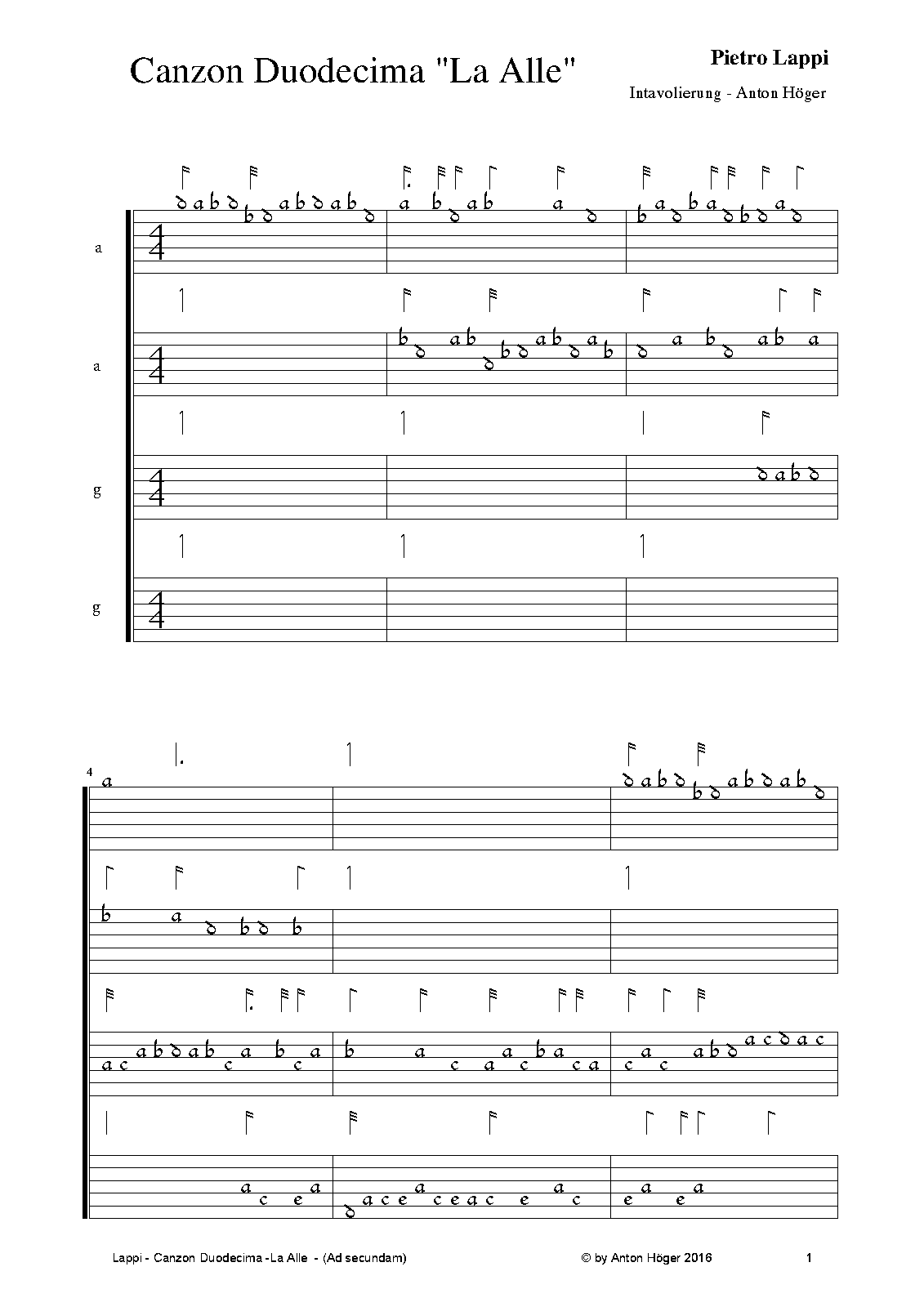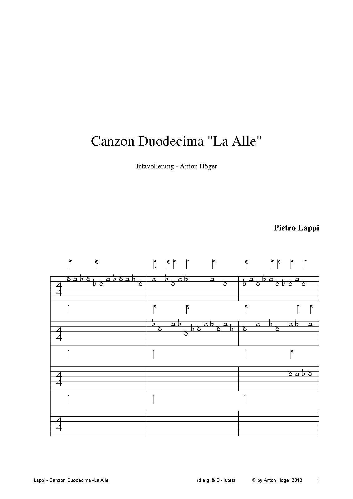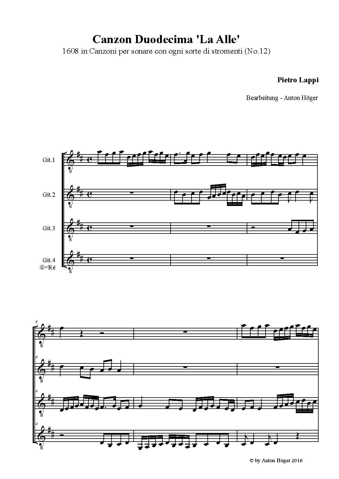 | Work Title | Canzon duodecima 'La Alle' a 4 |