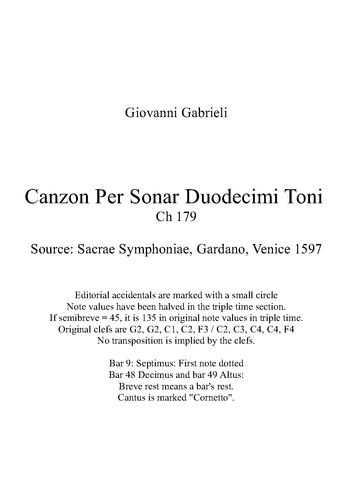 | Work Title | Canzon per sonar duodecimi toni a 10 |