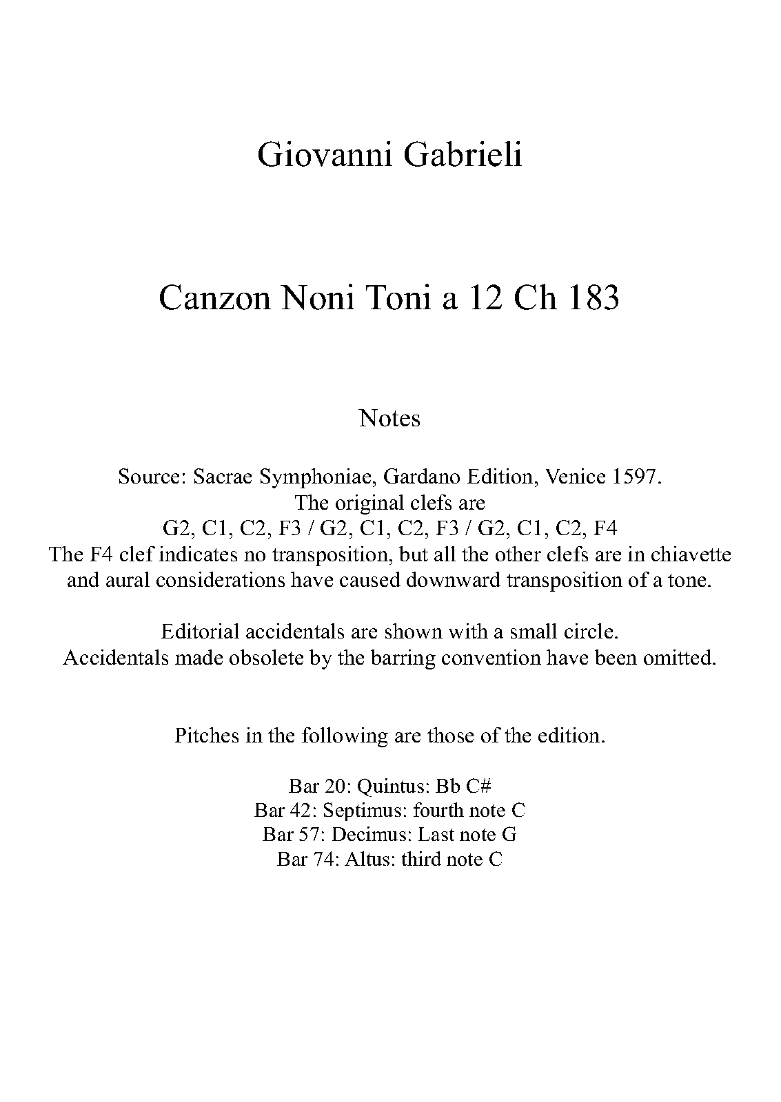 | Genre Categories | Canzonas; For 12 instruments; Scores with open instrumentation; |