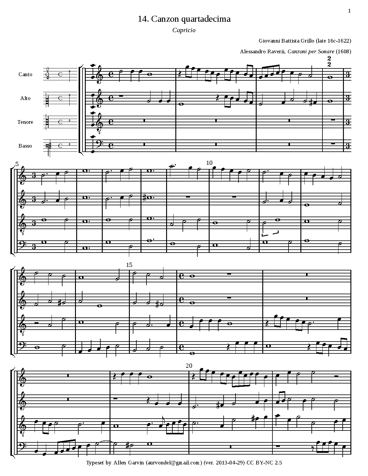 | First Publication | 1608 in Canzoni per sonare con ogni sorte di stromenti (No.14) |