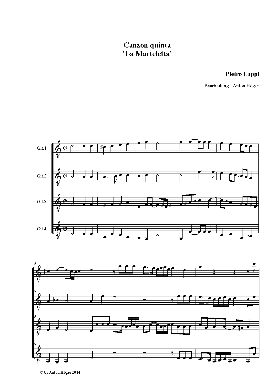 | Instrumentation | 4 instruments; canto, alto, tenore, basso |