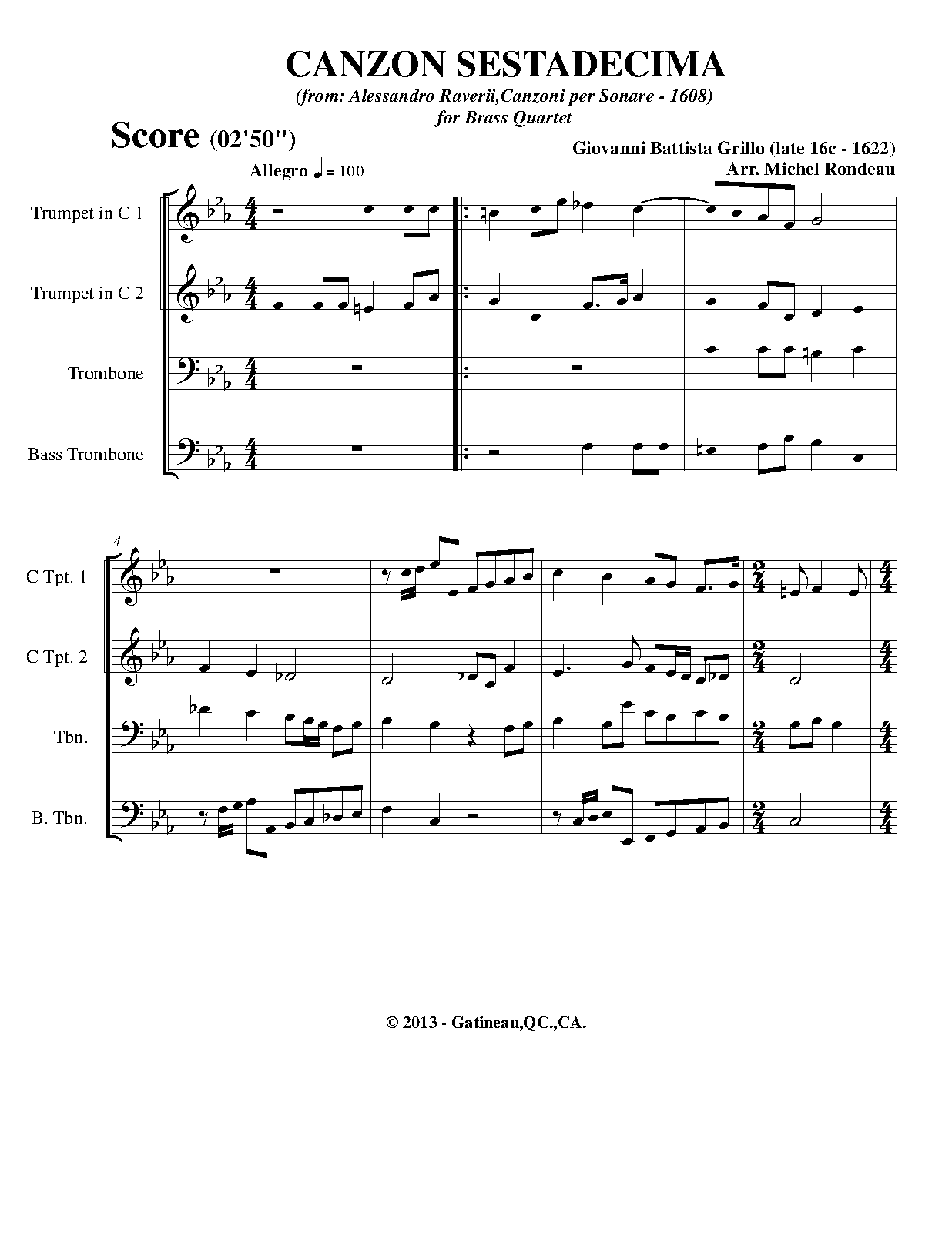 | First Publication | 1608 in Canzoni per sonare con ogni sorte di stromenti (No.16) |