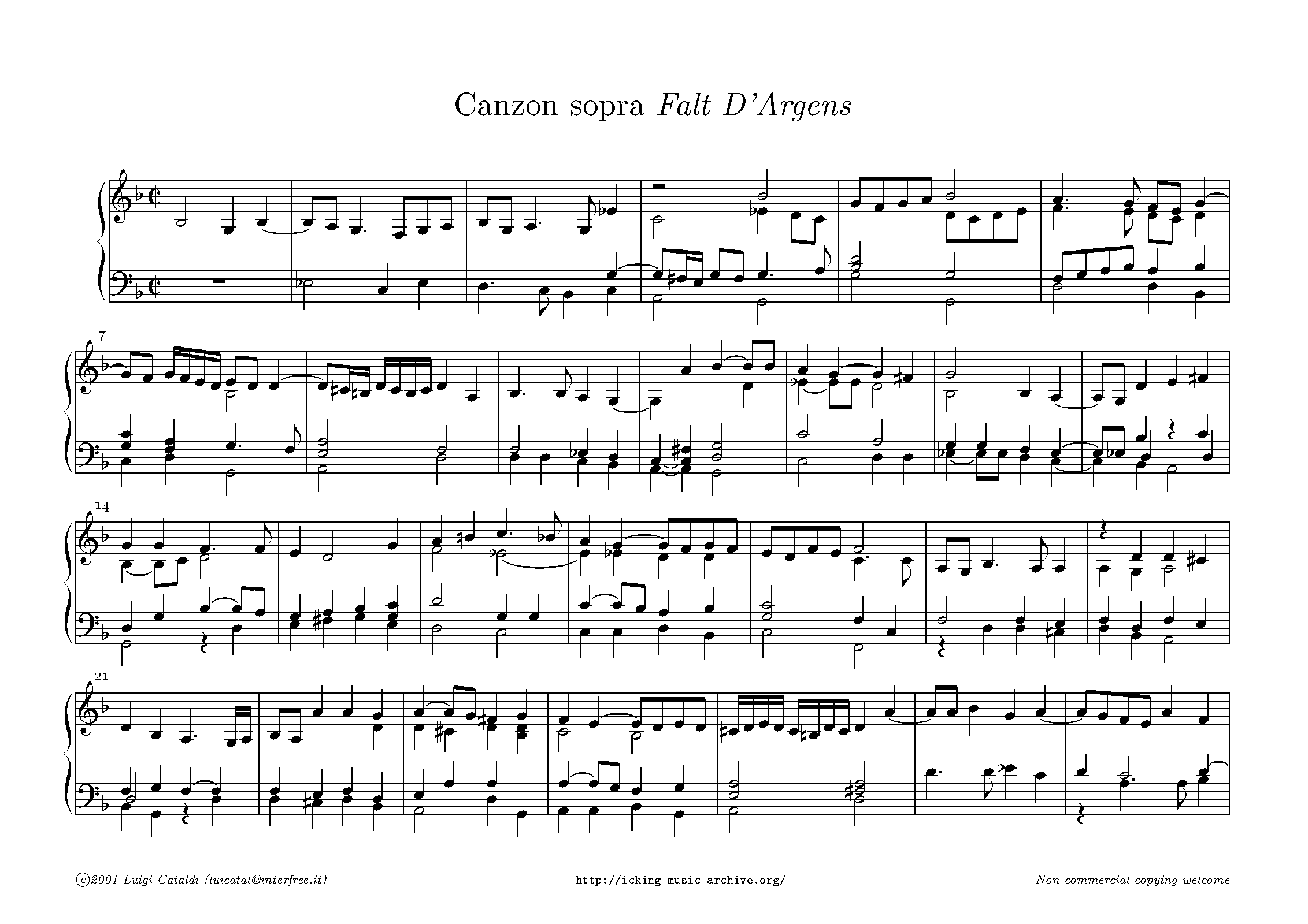 | Alternative. Title | Canzon sopra Falt d'argens |