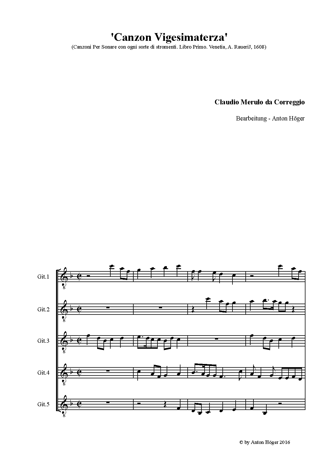 | First Publication | 1608 in Canzoni per sonare con ogni sorte di stromenti (No.23) |