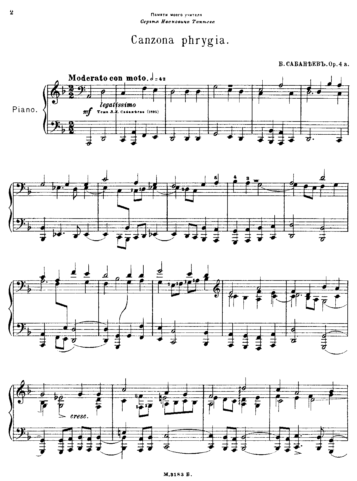 | Dedication | Sergey Taneyev |