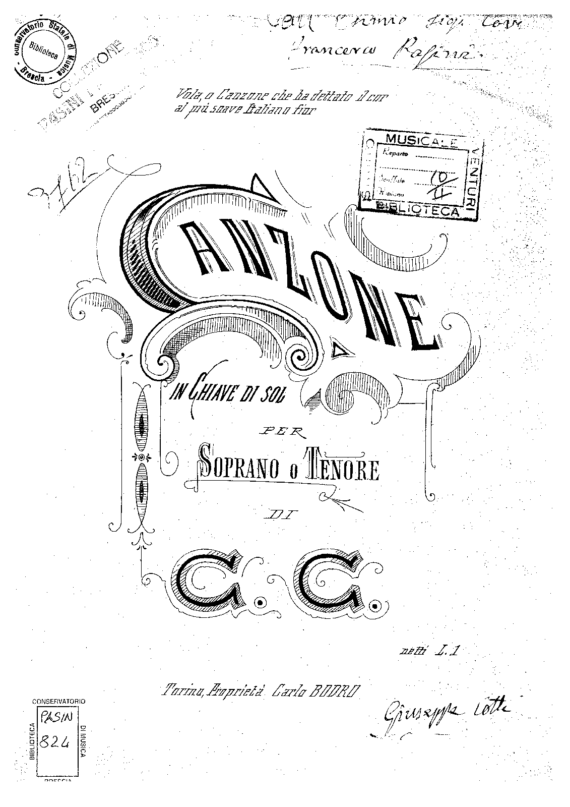 | Alternative. Title | Canzone in chiave di Sol per Soprano o Tenore |