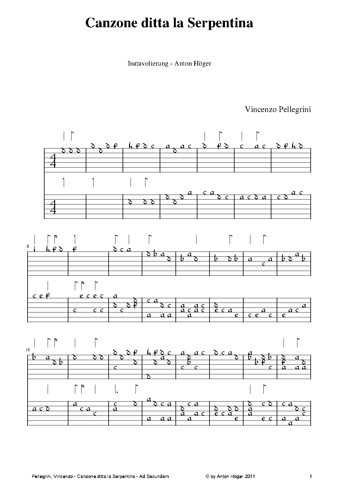 | First Publication | 1599 in Canzoni de intavolatura d'organo fatte all francese (No.4) |