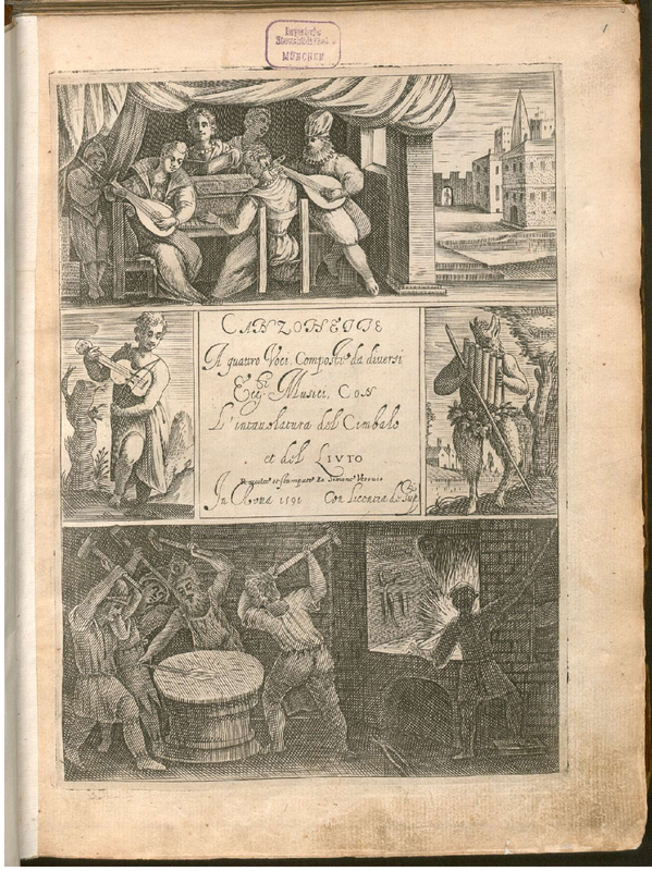 Canzonette A quattro Voci, Composte da diversi Ecc[ellen]ti Musici, Con L'intavolatura del Cimbalo et del Livto Raccolte et stampate da Simone Verouio