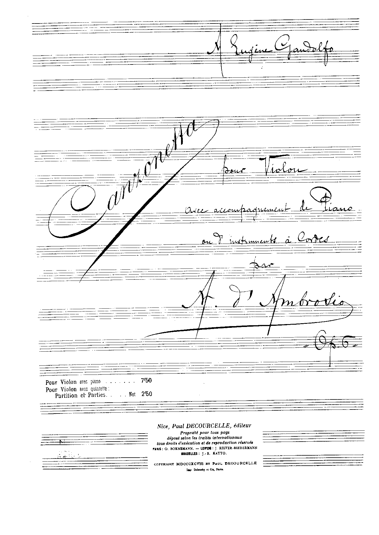 | Genre Categories | Canzonettas; For violin, piano; Scores featuring the violin; |