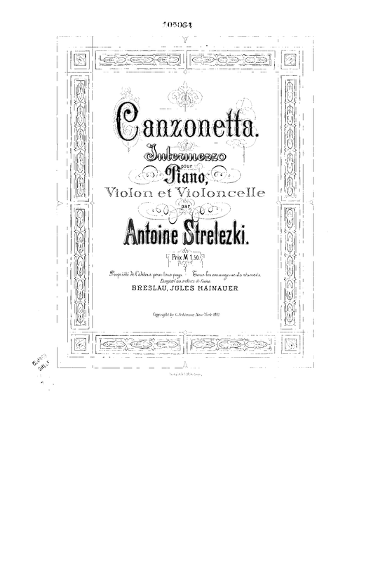 | Genre Categories | Canzonettas; For violin, cello, piano; Scores featuring the violin; |