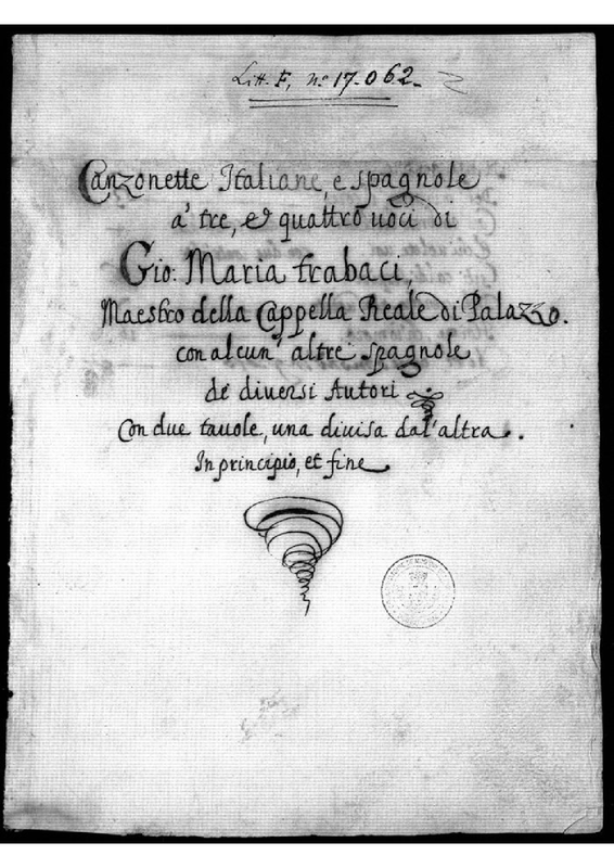 Canzonette italiane e spagnole á tre e quattro voci di Gio. Maria Trabaci, maestro della Capella Reale di Palazzo. Con alcum altre spagnole de diversi autori. Con due tavole, una divisa dal'altra. In principio et fine.