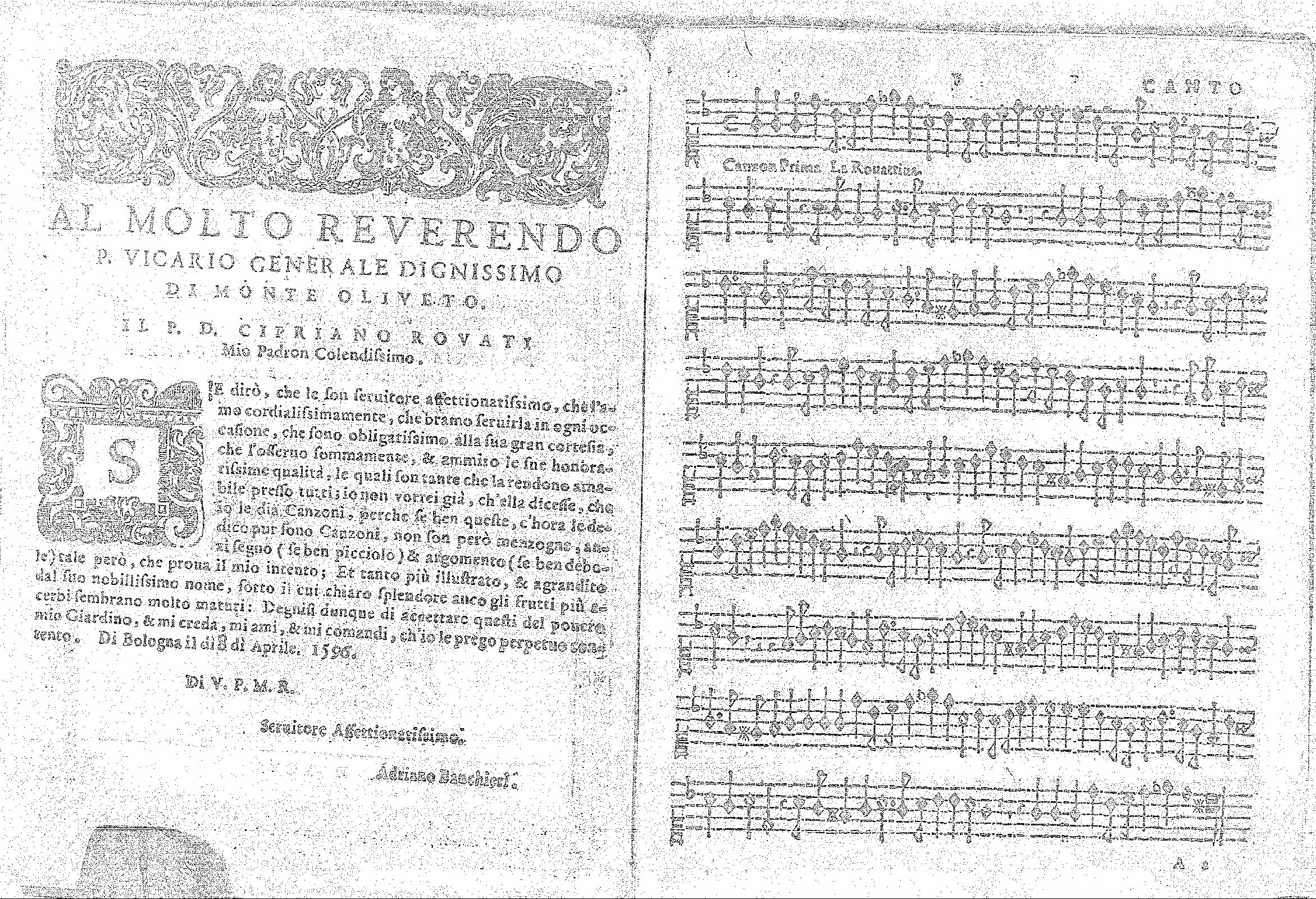Canzoni alla francese a quattro voci per sonare. Dentrovi, un echo, & in fine una battaglia a otto & dui concerti fatti sopra lieto godea
