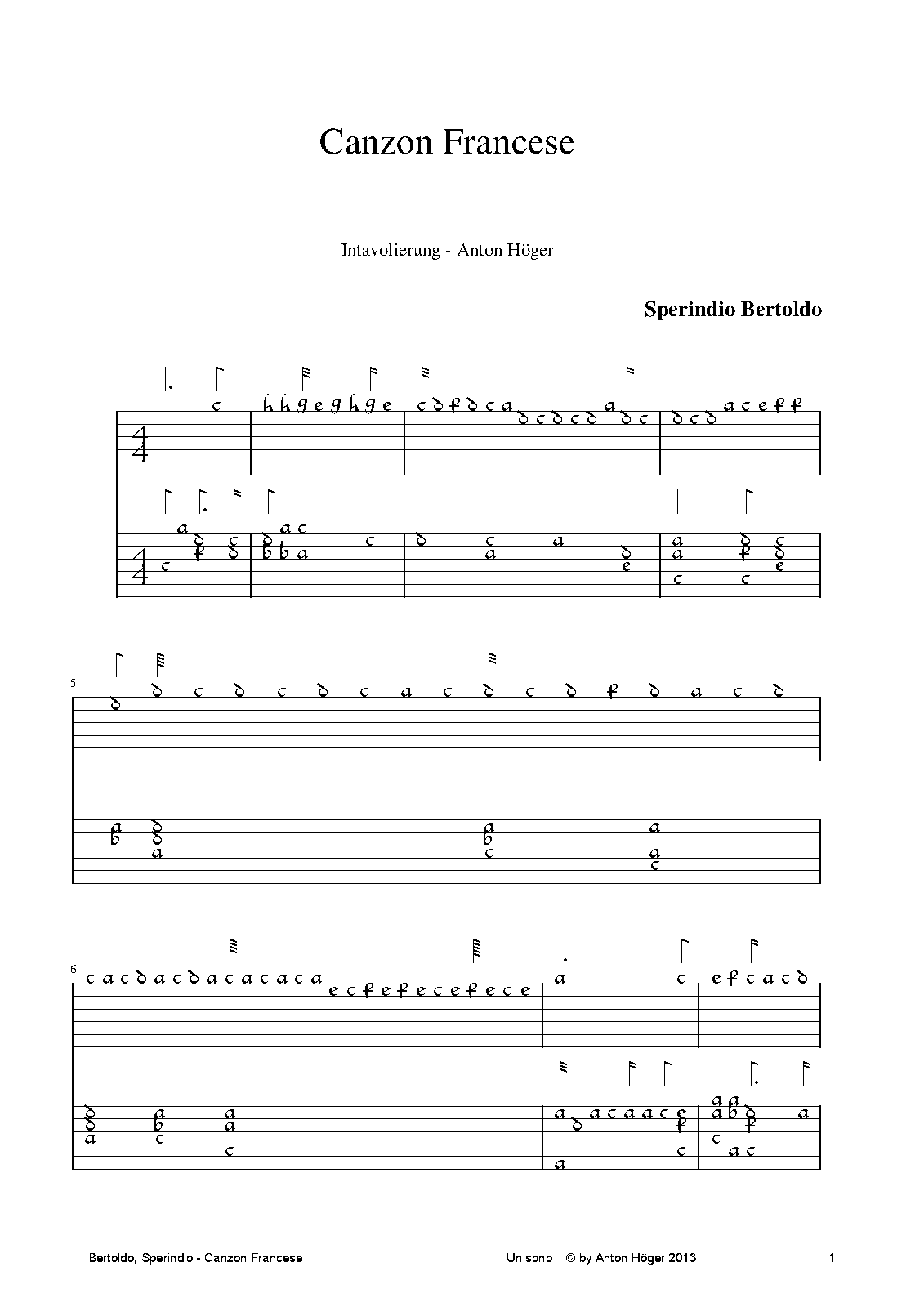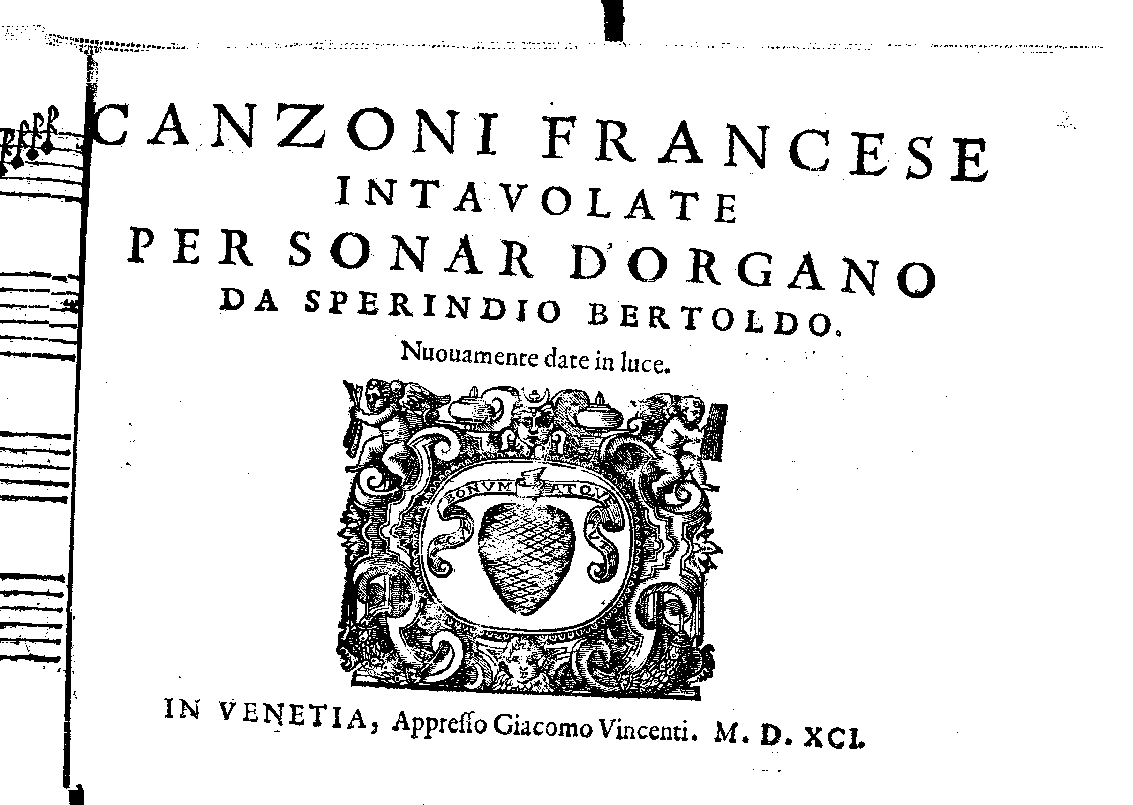 | Work Title | Canzoni francese intavolate per sonar d'organo |
