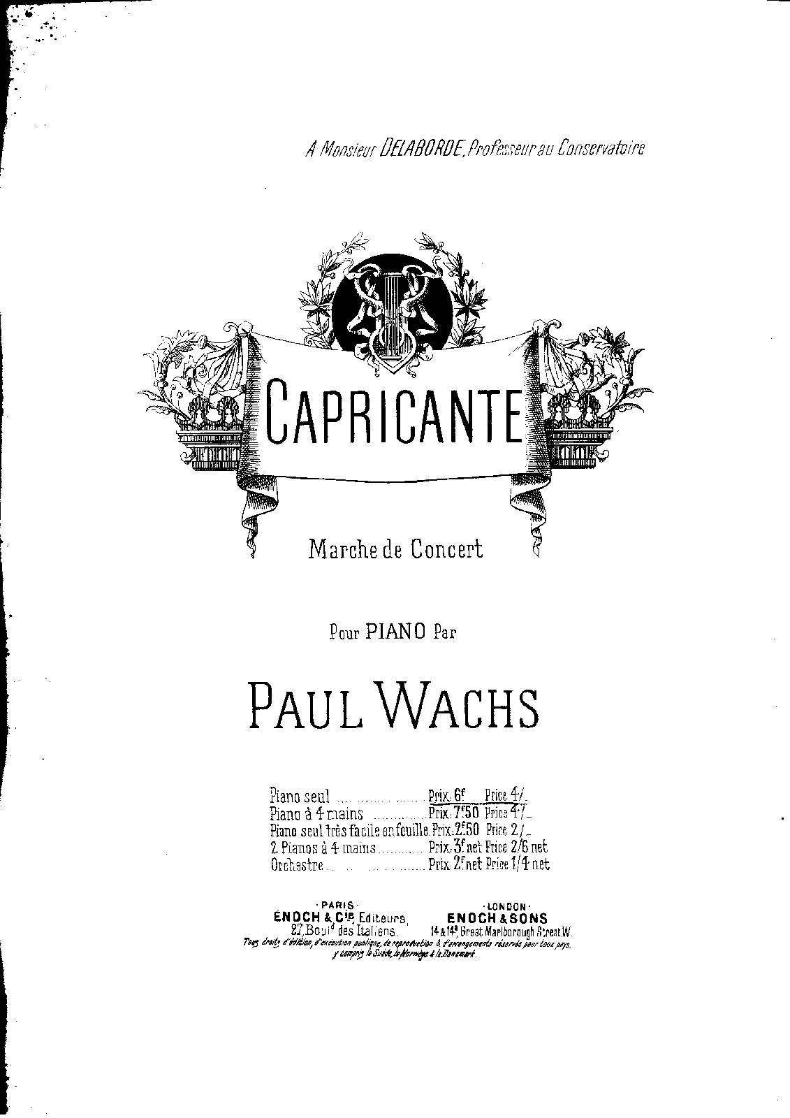 Paris: Enoch Frères et Costallat, n.d.(ca.1885). Plate E. F. & C. 1105. Reissue — Paris: Enoch & Cie., n.d.(after 1895). Plate E. & C. 1105.