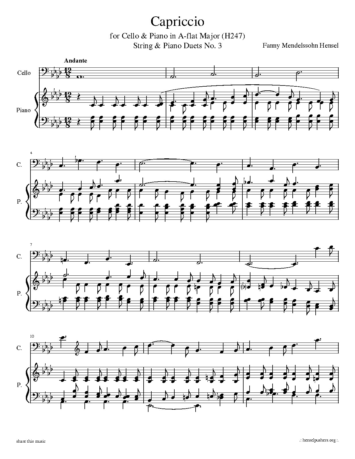 | Work Title | Capriccio for Cello and Piano in A-flat Major |