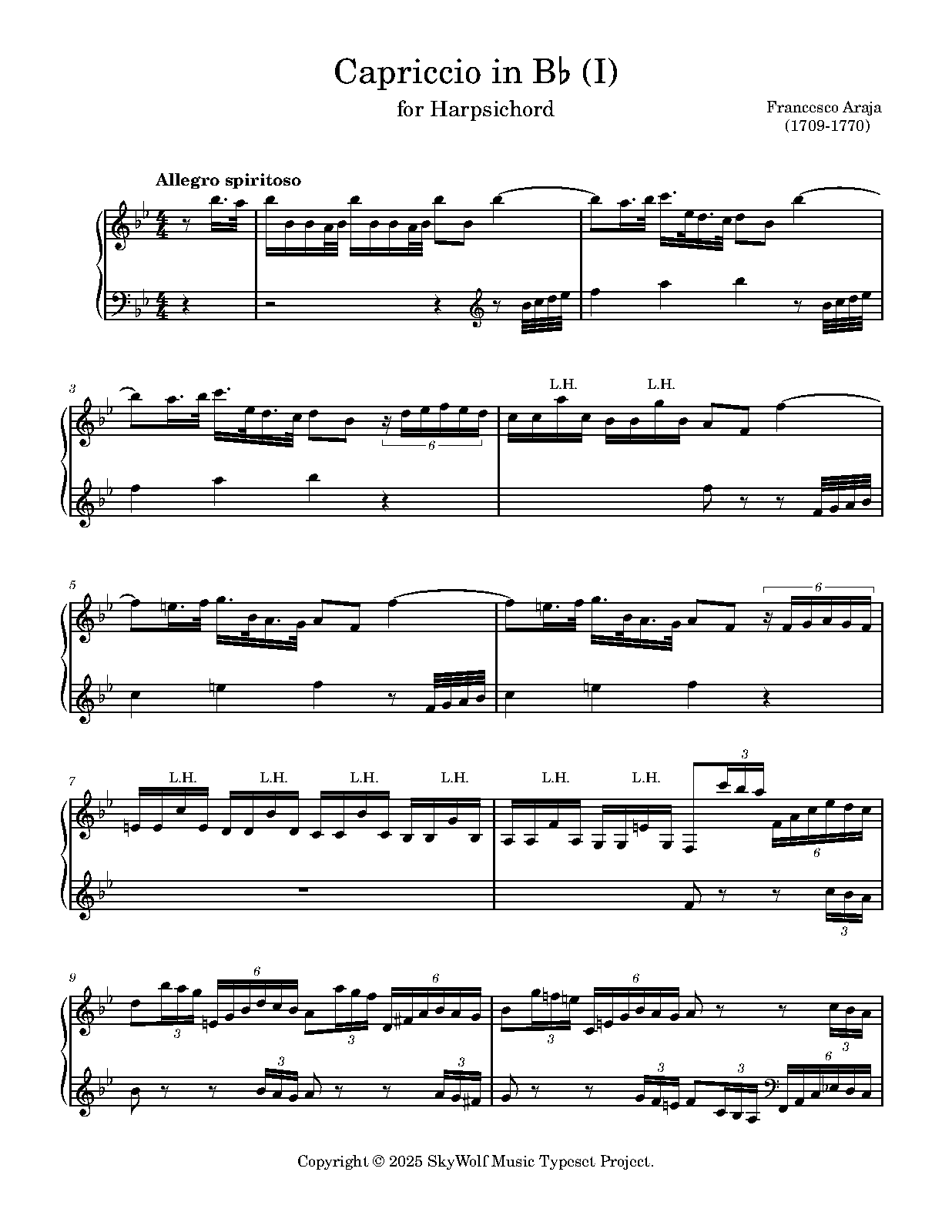 | Work Title | Capriccio for Harpsichord in B-flat major |