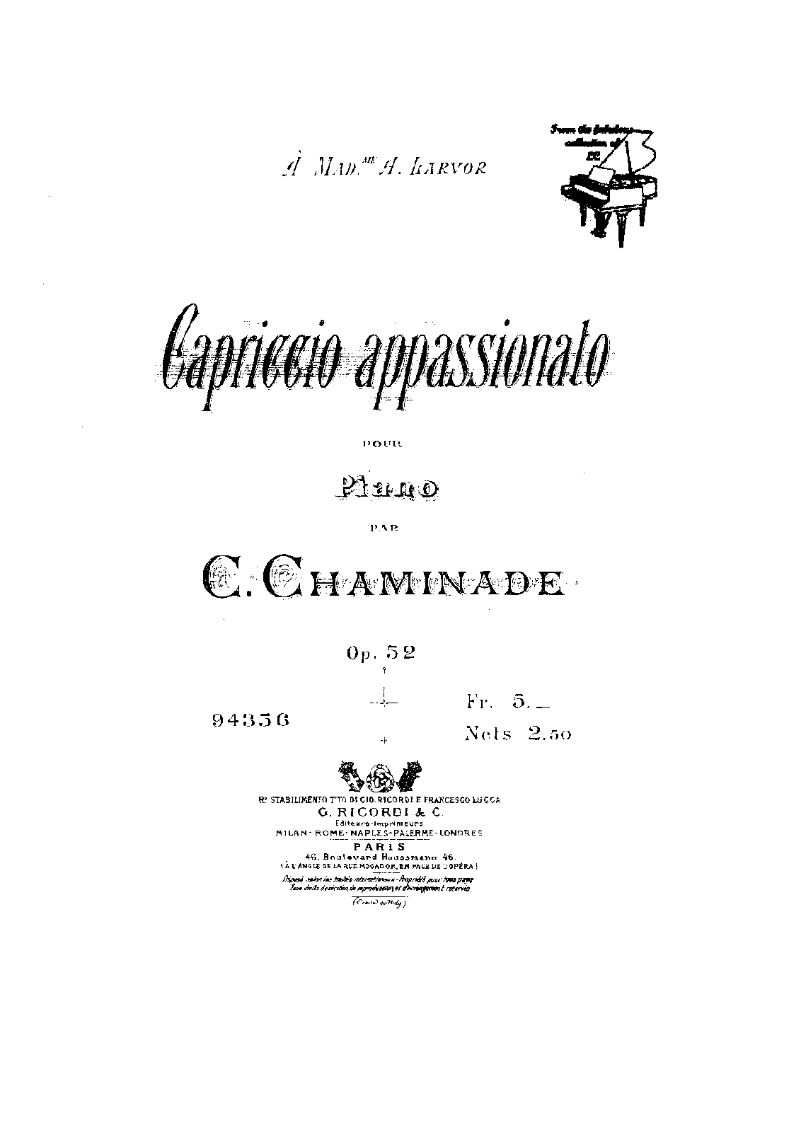 | Genre Categories | Capriccios; For piano; Scores featuring the piano; For 1 player |