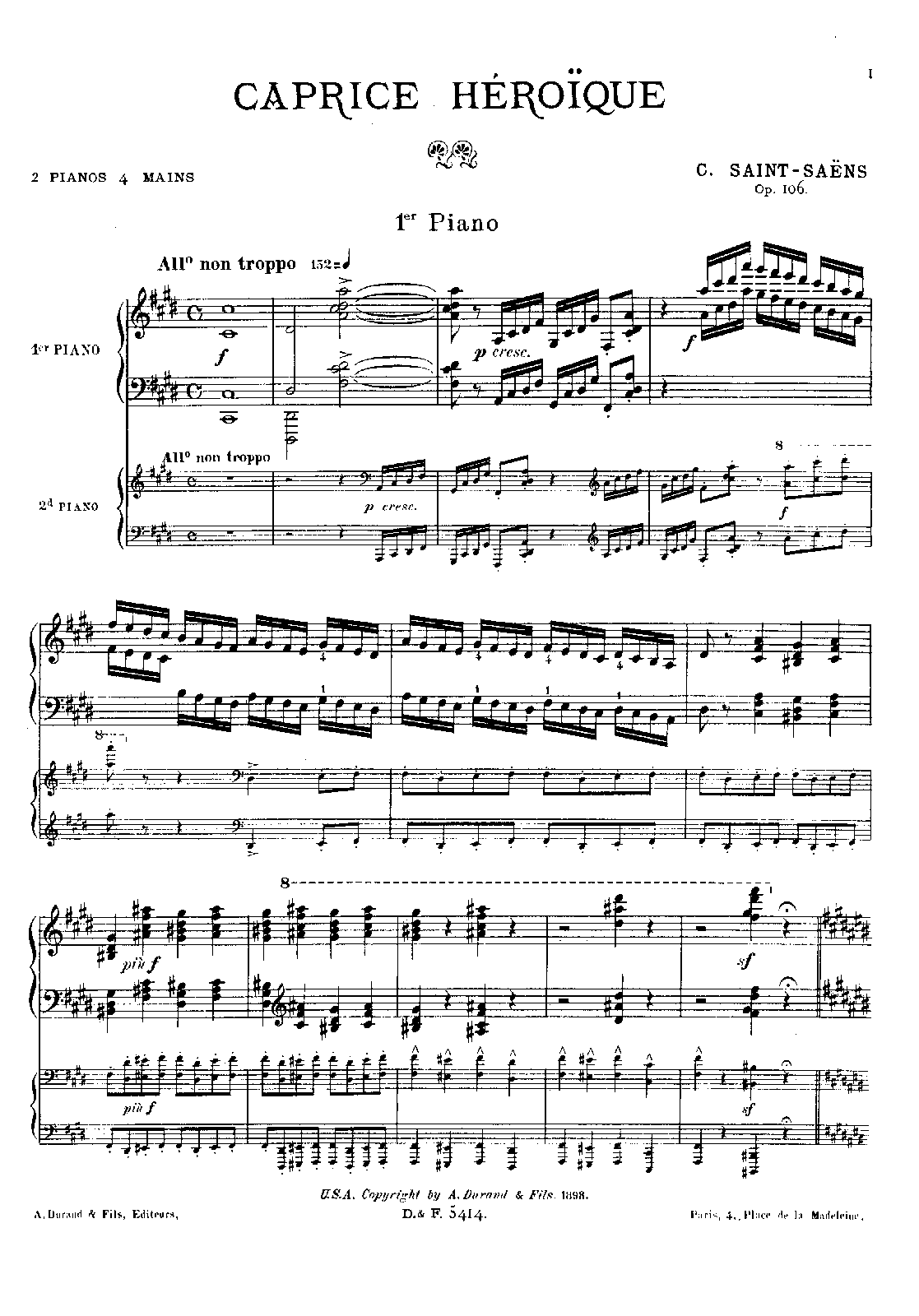 Publisher. Info. Paris: A. Durand & Fils, 1898. Plate D. & F. 5414.