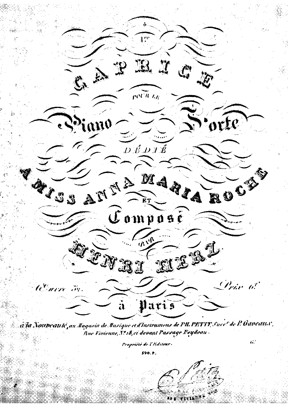Publication of a number of Herz works from Op 1 through 35 by Hofmeister announced in the Intelligenzblatt of the October 1827 AMZ. The Petit edition is mentioned in Whistling's Handbuch der musikalischen Literatur, 1828 (along with various editions of many though not all of Herz' Opp.1-40).