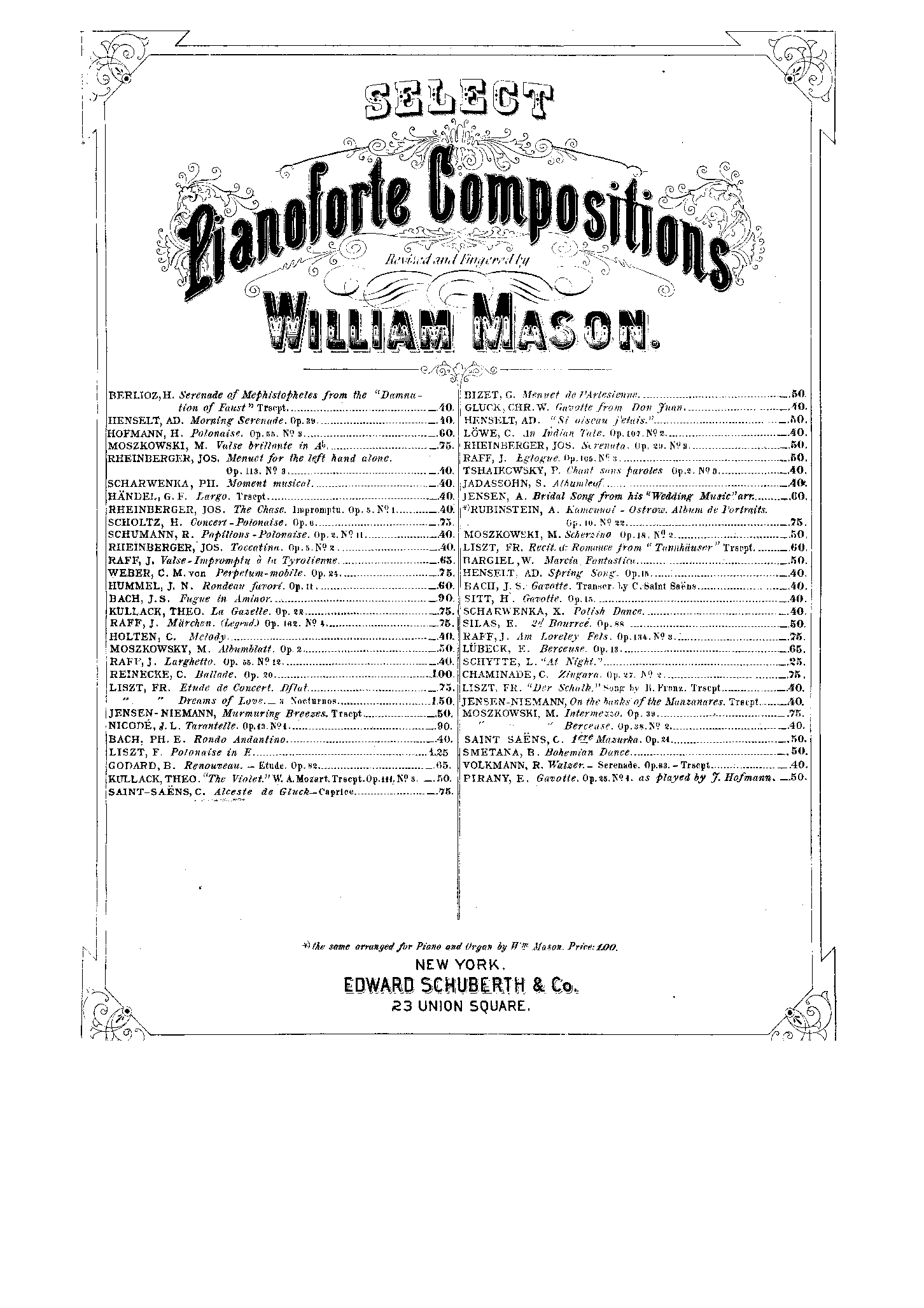 Reprinted New York: G. Schirmer, n.d.