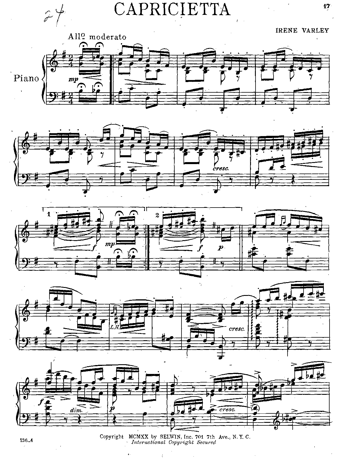 | First Publication | 1920 – New York: Belwin |