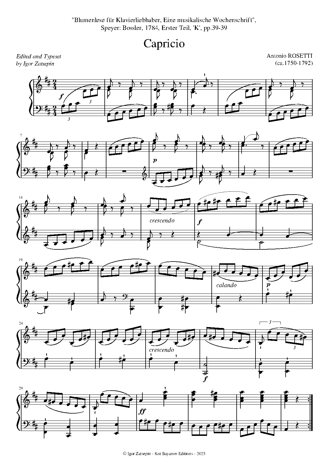 | Work Title | Capricio in D major, 'Blumenlese...' |