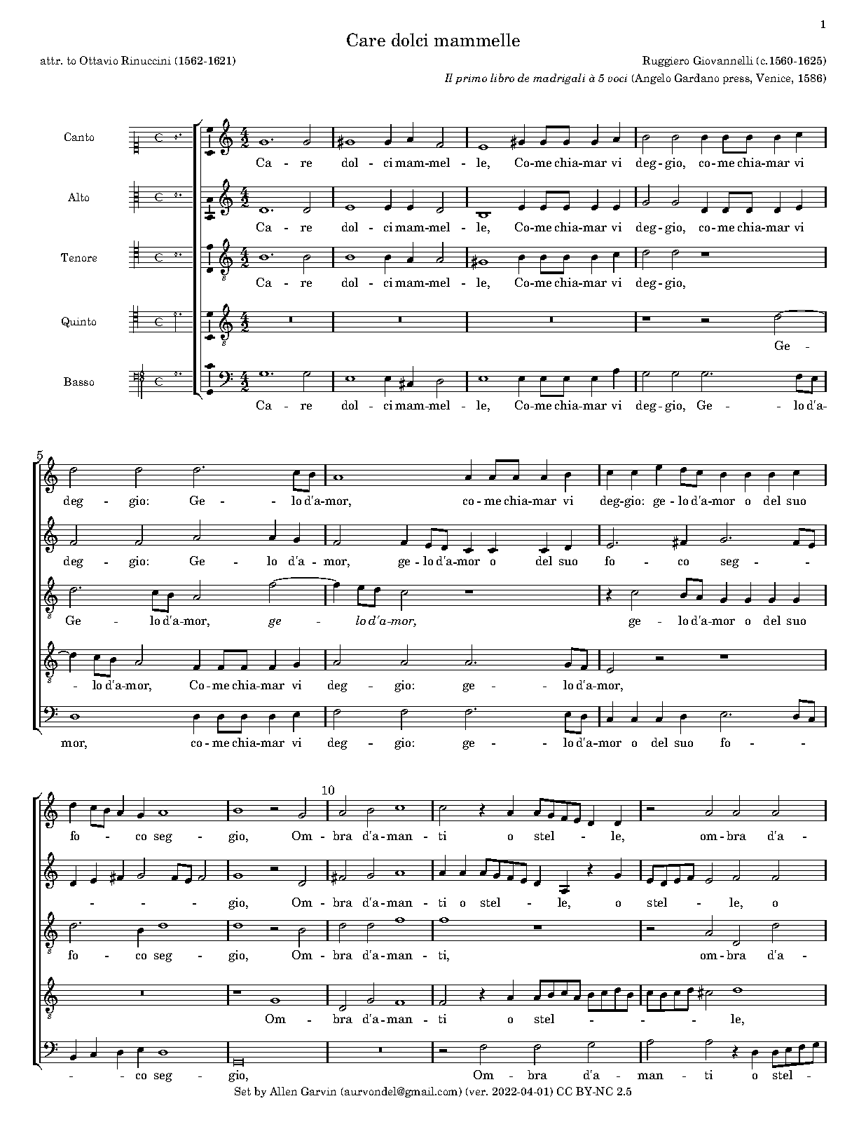 | First Publication | 1586 in Il primo libro de madrigali a 5 voci (Venice: Angelo Gardano press) |