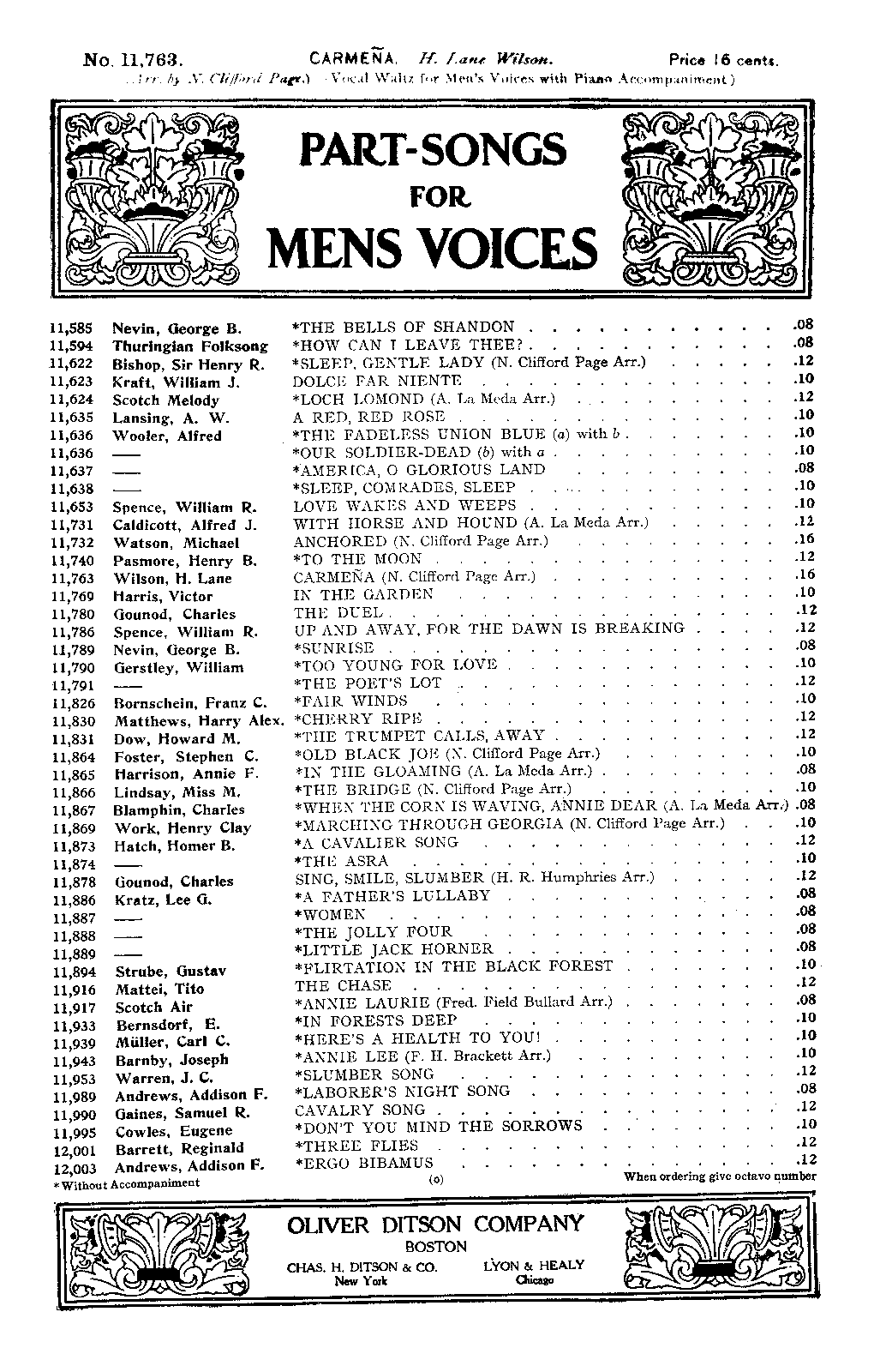 Oliver Ditson Company's Octavo Edition, No.11,763 Boston: Oliver Ditson Co., 1908. Plate 5-44-66923-9.