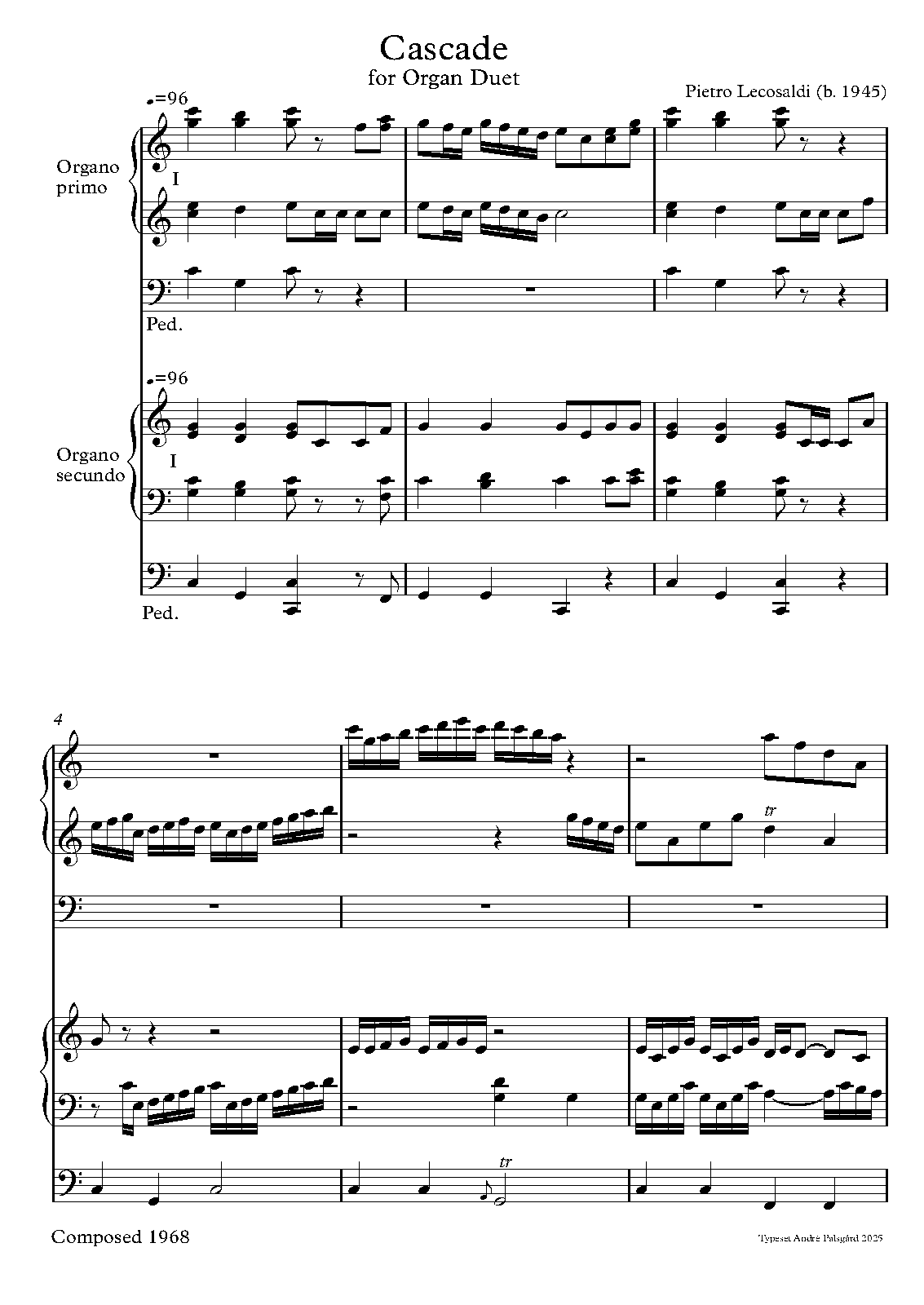 | Work Title | Cascade for Organ Duet |