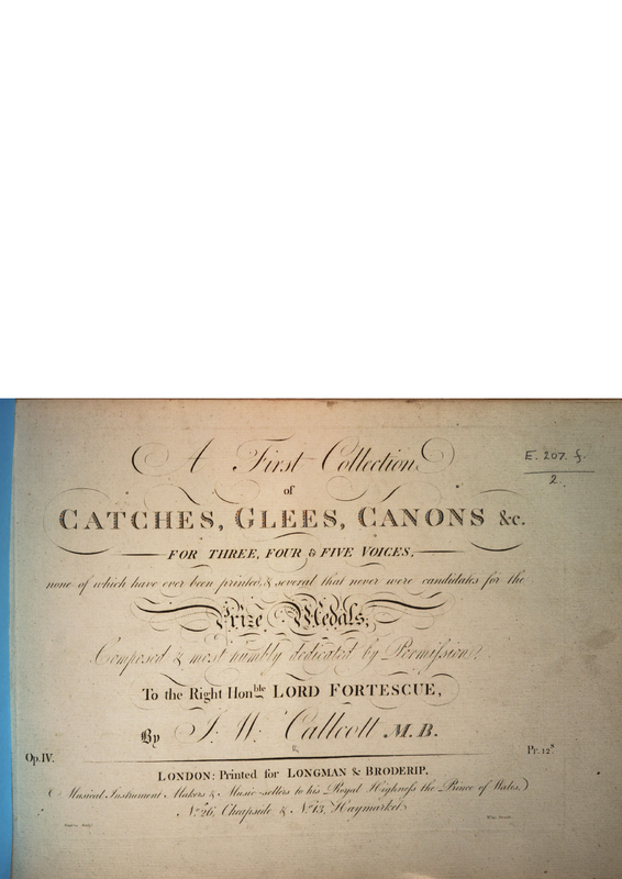 A First Collection of Catches, Glees, Canons &c. for three, four & five voices, none of which have ever been printed, & several that never were candidates for the Prize Medals