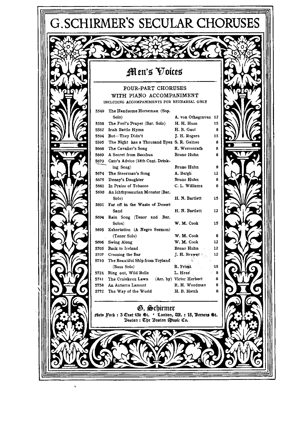 | Genre Categories | Songs; For voice, piano; For voices with keyboard; |